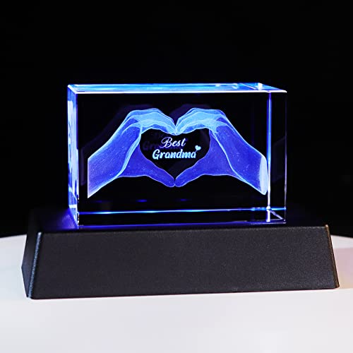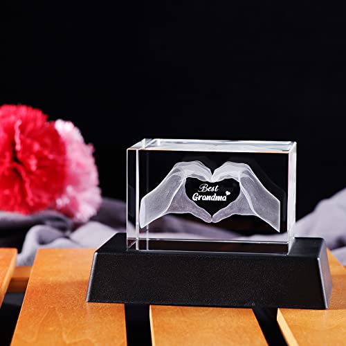 Best Grandma Birthday Gifts Figurines, Engraved 3D Gesture of Heart Crystal Night Light Keepsake from Grandchildren, for Grandmother from Granddaughter or Grandson