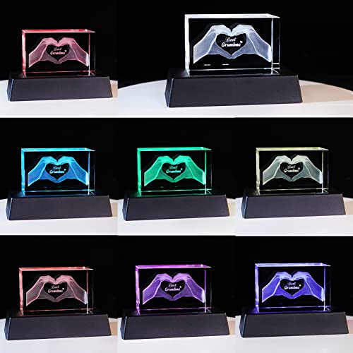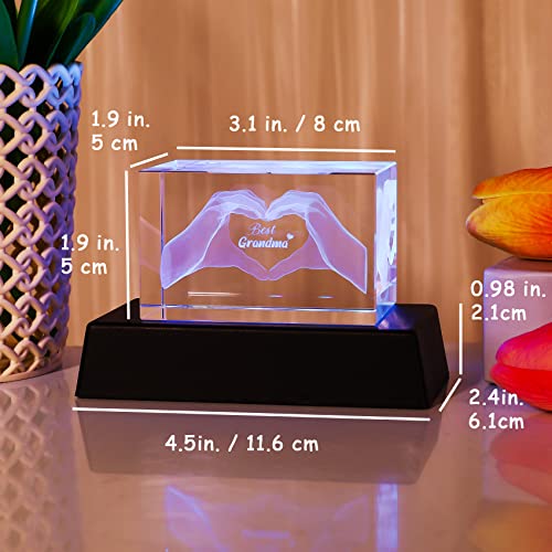 Specification: Best Grandma Birthday Gifts Figurines, Engraved 3D Gesture of Heart Crystal Night Light Keepsake from Grandchildren, for Grandmother from Granddaughter or Grandson