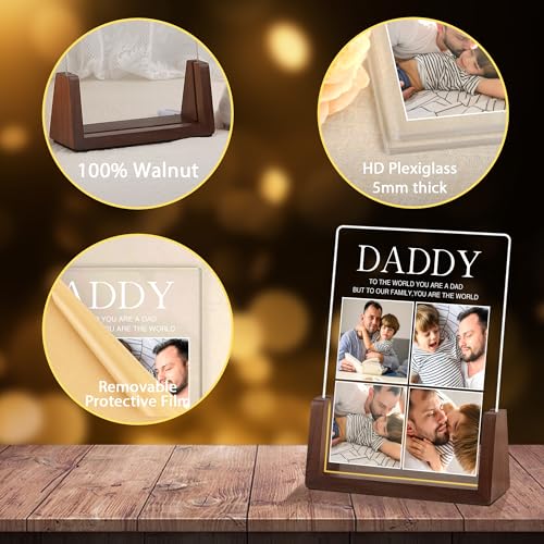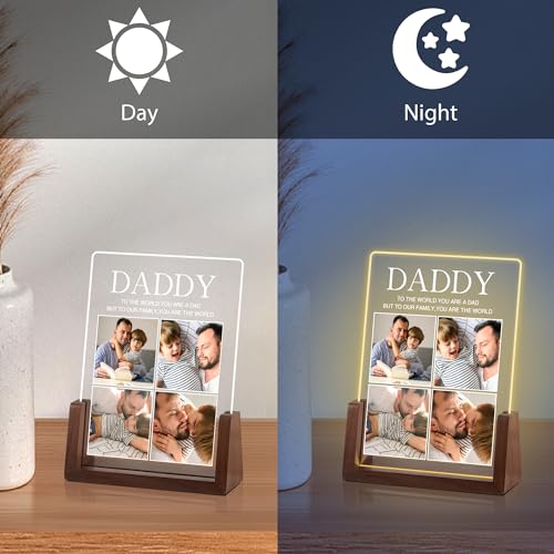 Specification: Custom Fathers Day Birthday Gifts for Dad from Wife Daughter Personalized Dad Gifts from Son Kids Customized Walnut Frame Acrylic Plaque Printed with Photos LED Night Light Gifts for Papa Daddy