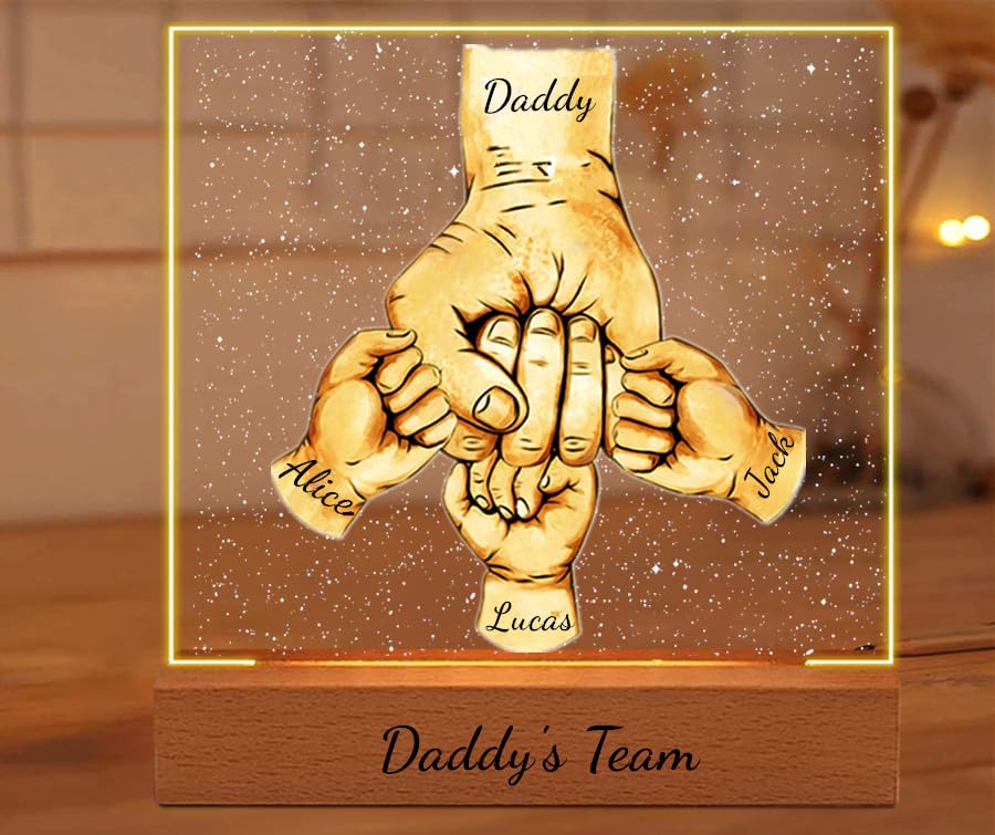 Specification: Daddy’s Team Fathers day Fist Bump Gift Personalized Acrylic Fathers day Fist Bump LED Night Light, Custom Dad Night Light, Father’s Day Christmas Birthday Gifts for Daddy, Papa, Grandpa (style 3)