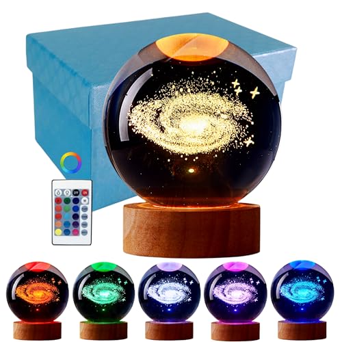 Galaxy Crystal Ball Night Light, 3.15 Inch 3D Solar System Crystal Lamp with LED Wooden Base, 16 Colors Change with Remote Control, Gift Box Packing, Gifts Ideas for Friends (Galaxy)