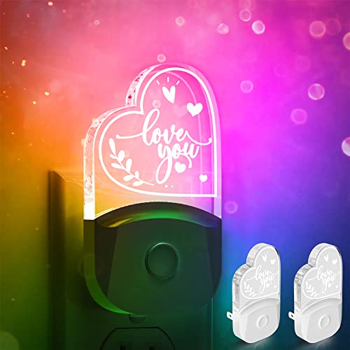Love You Night Light Gift for Birthday, LOHAS LED Night Light for Adults, Dusk to Dawn, 3 Lighting Modes, RGB+Soft White 3000K, Heartwarming Gifts for Mom, Dad, Wife, Teacher, Room Decor, 2 Pack