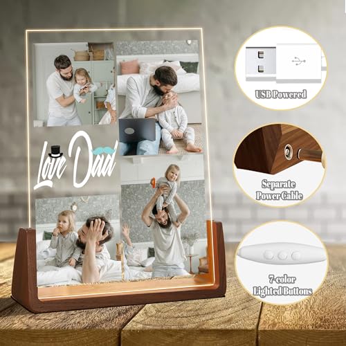 Personalized Father’s Day Gifts,Custom Acrylic Plaque with Picture,Personalized Photo Night Light,Unique Birthday Gifts for Dad,Best Dad Ever Gifts from Daughter Wife Son