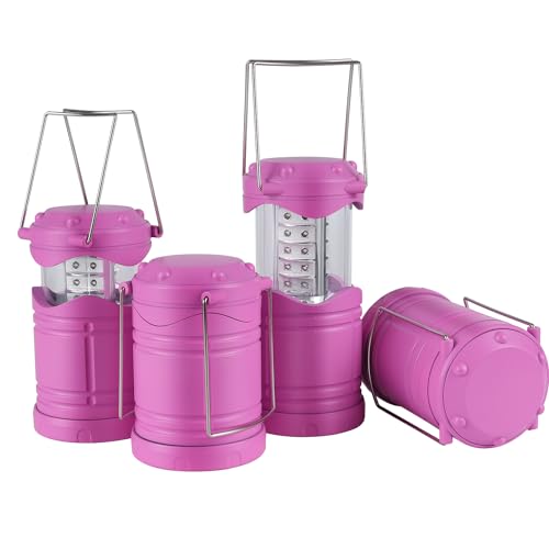 Specification: Lichamp 4 Pack Pink LED Camping Lanterns, Battery Powered Camping Lights LED Super Bright Collapsible Flashlight Portable Emergency Supplies Kit, A4PK