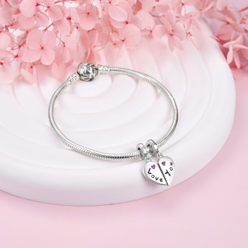 JIAYIQI Mother Sister Daughter Wife Charms Fit Pandora Charms Bracelet with Double Heart Love Charms 925 Sterling Silver Beads for Women Gift