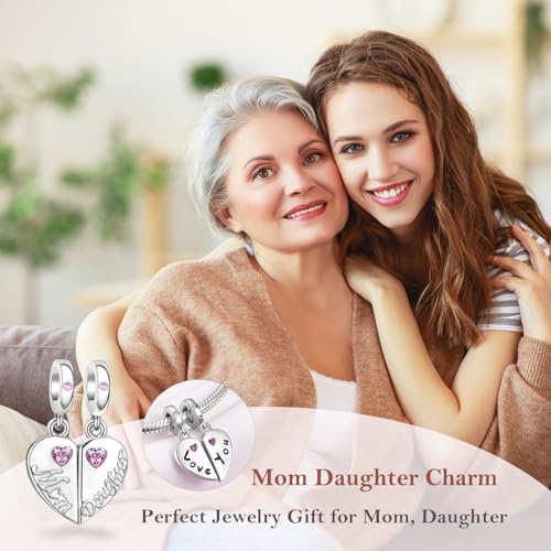 Specification: JIAYIQI Mother Sister Daughter Wife Charms Fit Pandora Charms Bracelet with Double Heart Love Charms 925 Sterling Silver Beads for Women Gift