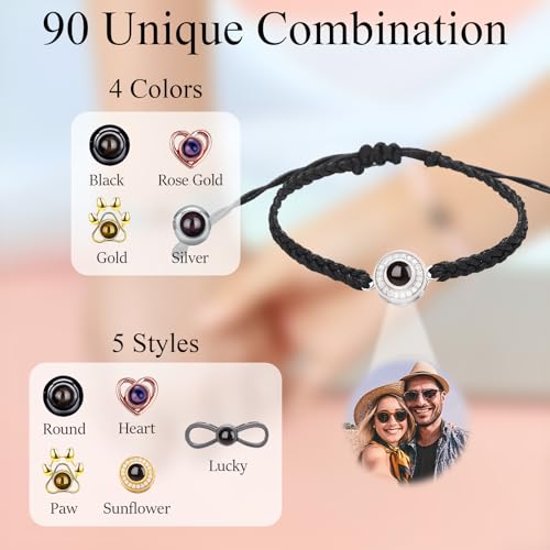 Custom Photo Bracelets,Projection Bracelet with Picture inside Personalized Picture Bracelet for Girls Boys Women Man Couple as Valentines Day Fathers Day Birthday Gift