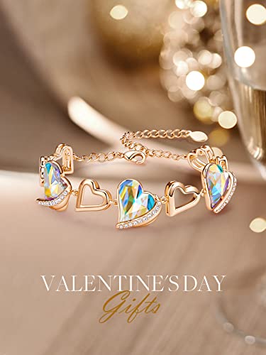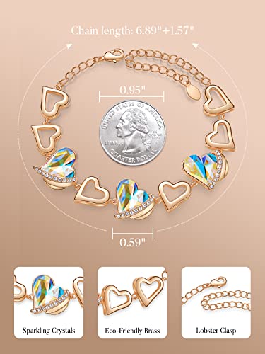 CDE Love Heart Birthstone Bracelets for Women Girls Rose Gold Plated Link Bracelet Embellished with Crystals from Austria Birthday Christmas Valentine’s Mother’s Day Jewelry Gift for Wife Girlfriend