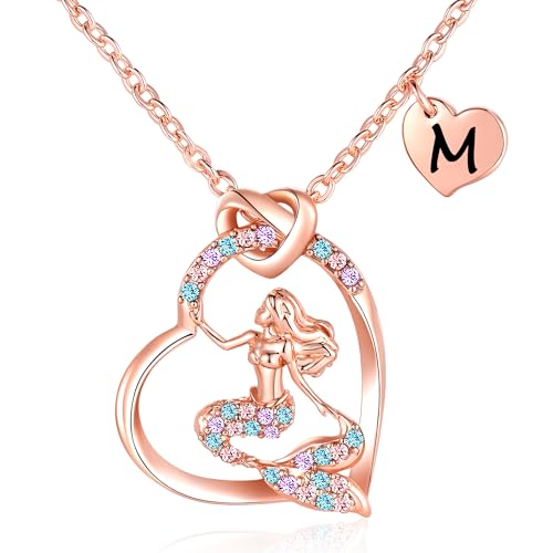 K-Acc 14K Gold-Plated Mermaid Initial Heart Necklace – Gifts for Girls