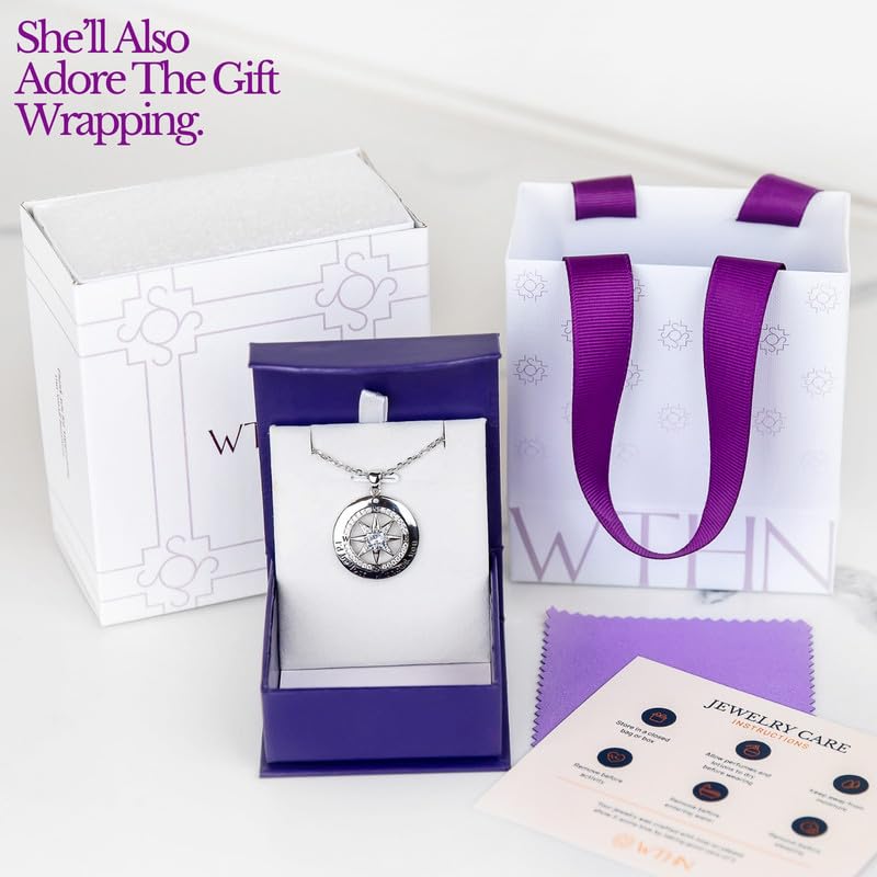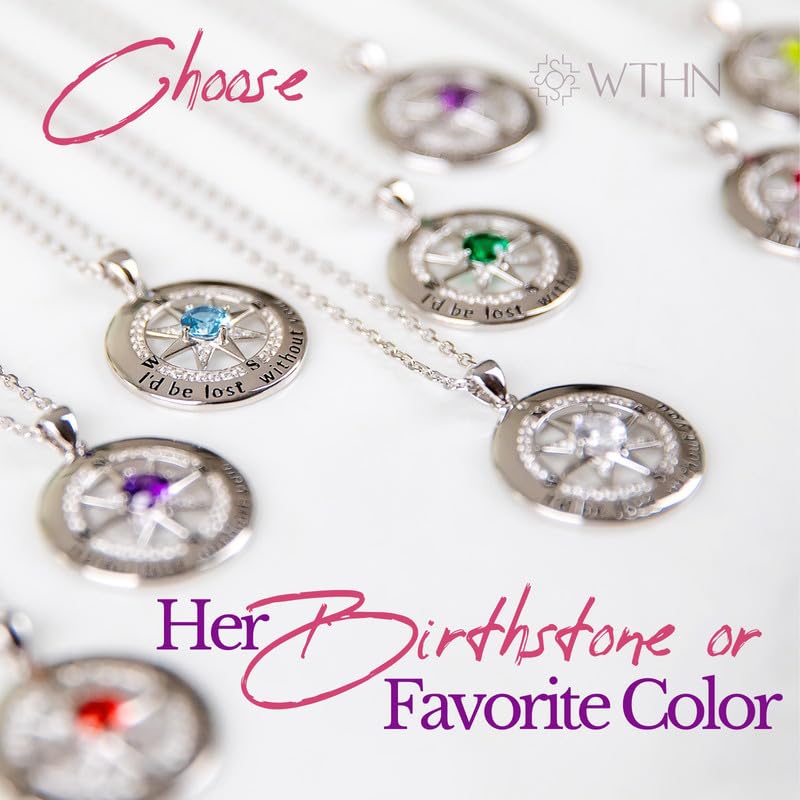 Be the first to review “Unique S925 Sterling Silver Jewelry Birthstone Necklace Anniversary or Mothers Day Gift For Wife Girlfriend Her I’d Be Lost Without You Pendant Compass Necklace For Women”