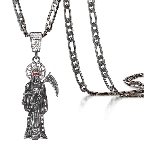 Specification: Santa Muerte Necklace Diamond 14K Gold Plated Santa Muerte Pendant Jewelry With Sickle Holiday Gift