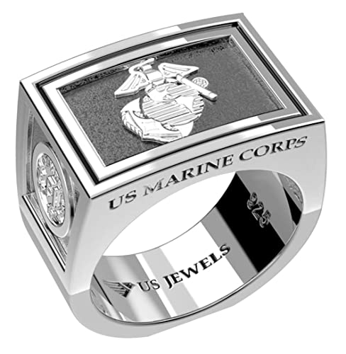 Specification: Men’s Heavy 0.925 Sterling Silver US Marine Corps USMC Military Ring Band, Sizes 8-13