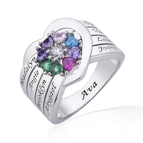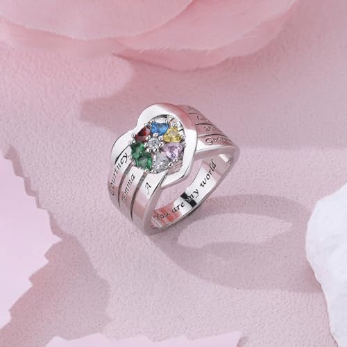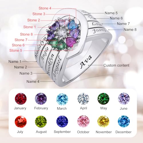 Specification: Mom’s Custom Ring with Birthstones & Names Personalized Family Gemstone Gift for Mothers Day Women Grandmas Wife