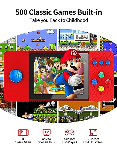 Specification: Heiko Retro Handheld Game Console, 500 FC Games, 3.5″ Screen, 1200mAh Battery Portable Video Game Console, Protective EVA Case, Support Two Players & TV Connection, Gifts for Your Boys Girls(Red)