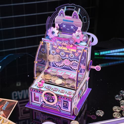 Specification: MU 3D Wooden Puzzles Arcade Game Coin Pusher Model Building, Replica Coin Dozer 3D Metal Puzzles Model Kits, DIY Vending Machine Model Piggy Bank Toy Money Box Xmas Birthday Gifts Desk Decor