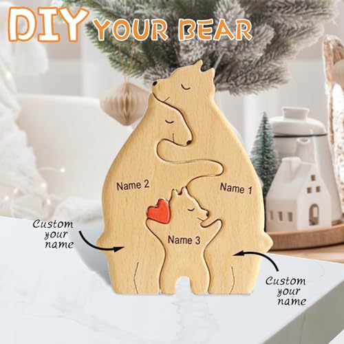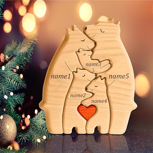 Specification: Gift for Dad-Personalized Wooden Bears Family Puzzle Gifts with 1-8 Name Decorative for Father’s day-Jigsaw Custom Wooden Animal for Father,Family,Birthdays,Sculpture Decor,House Warming (Bear)