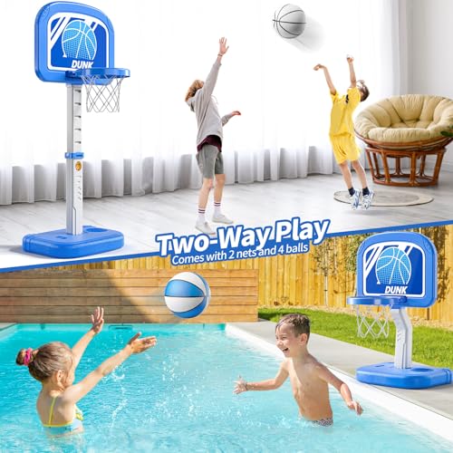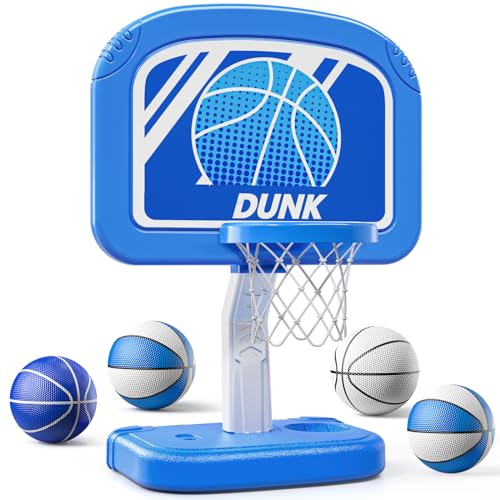Specification: TEMI Swimming Pool Basketball Hoop, Adjustable Poolside Hoops with 4 Balls and Pump, Indoor Outdoor Basketball Game for Toddler Kids, Summer Swimming Pool Water Game Gifts for Kids Boys Girls