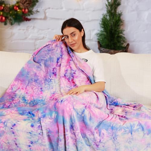 Elegear Rainbow Throw Girls Blanket, Unique Tie-dye Flannel Blanket Super Soft Cute Decorative Floor Sofa Couch Throw Warm Cozy Fuzzy Blanket for Adults Kid’s Gift