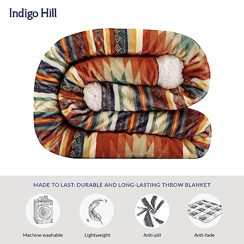Indigo Hill by HiEnd Accents Del Sol Aztec Sherpa Throw Blanket, Tribal Navajo Print Western Blanket for Camping Outdoor, Southwestern Sherpa Fleece Blanket for Couch, Sofa, Bed, 54×68 inch