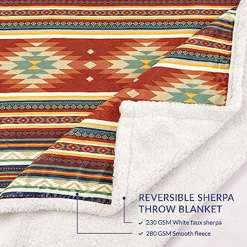 SHERPA THROW: Find solace in the plush refuge of our Southwest blanket. Its construction, featuring a soft microfleece front and a comforting Sherpa back.