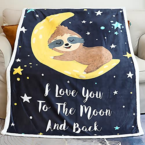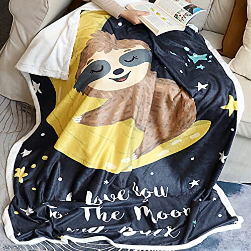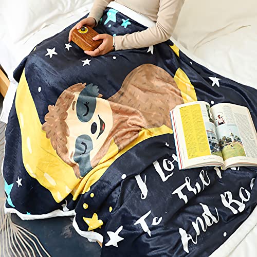 Sloth Blanket, Sloth Gifts for Women Sloths Lovers I Love You to The Moon and Back Throw Blanket Sloth Decor Blankets for Girls Kids Toddler Couch Bed (Sloth 2, 48″x60″)