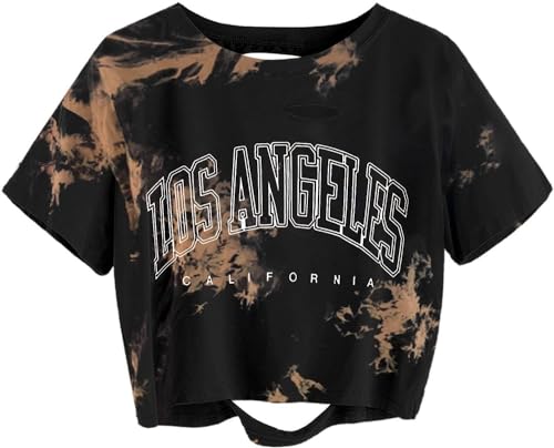 Finger Graphic Print Tie Dye Crop Best For Girls Teens Loose Summer Cut out Tee Oversized T-Shirt