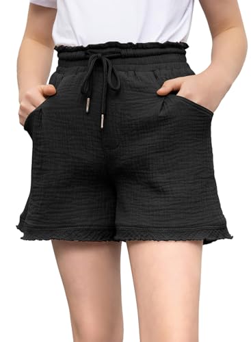 blibean Tween Girls Cotton Elastic Waist Shorts with Pockets Size 6-15 Years