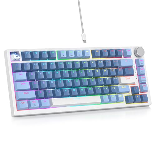 Specification: Guffercty kred 75% Percent Blue Keyboard Gasket Mount with Knob, Hot-swappable RGB Wired Mechanical Gaming Keyboard Programmable for Mac/Win (82 Sea Fog Blue)