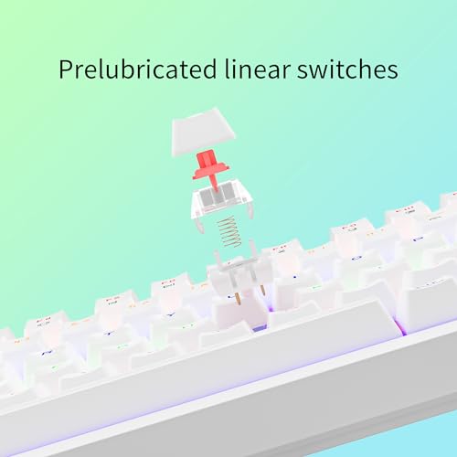 [Hot-swappable Linear Switch] hot swappable function can will let you customize your mechanical keyboard with different combination layout on keycaps and 3-pin switches.The red switch characterized for being linear and smoother, slight key sound with minimal resistance, but fast action without a tactile feel; easy to tap the gaming keyboard。