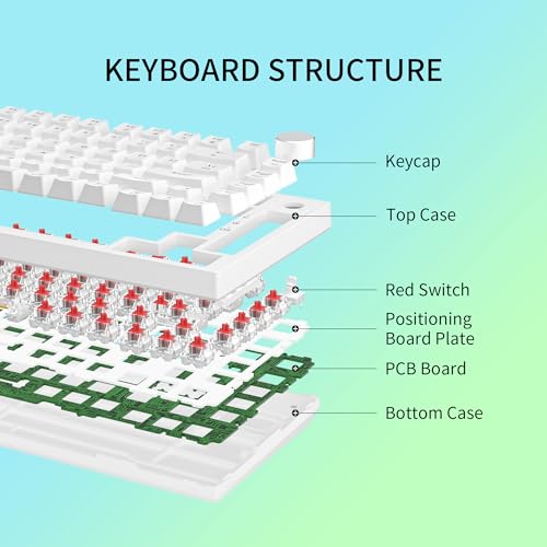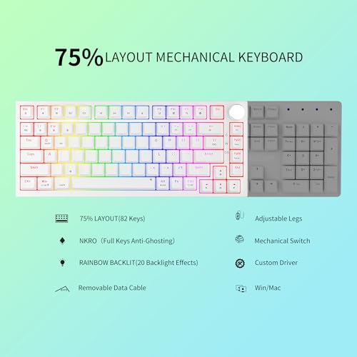 Specification: Newmen GM326 75% Mechanical Gaming Keyboard, 82 Keys Gasket Hot Swappable Wired Mechanical Keyboard with Rainbow LED Backlit NKRO Compact Gaming Keyboard with Knob for Windows and Mac (White Keycaps)