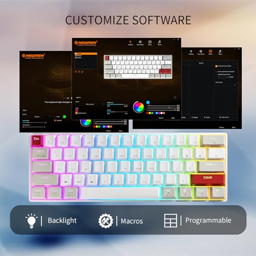 [Macro Recording & Compatibility] The NEWMEN GM610 wireless mechanical gaming keyboard can connect to your computer, laptop, tablet, or smartphone. You’ll record macros easily and assign them through the software. Moreover, this 60% keyboard is compatible with Windows, Mac, and Android systems.