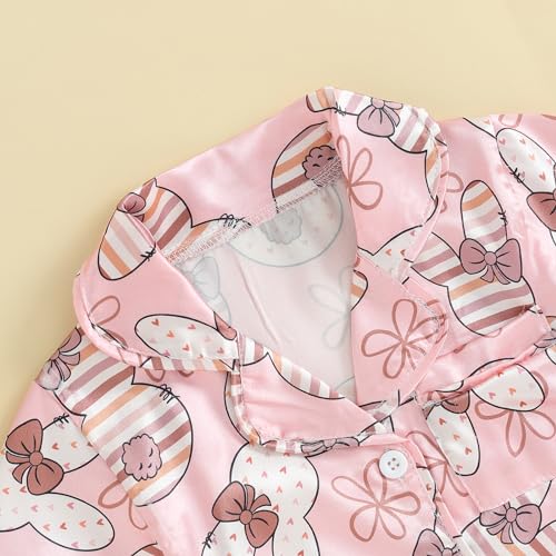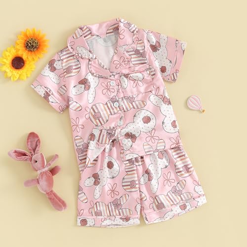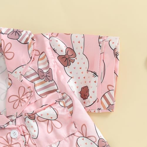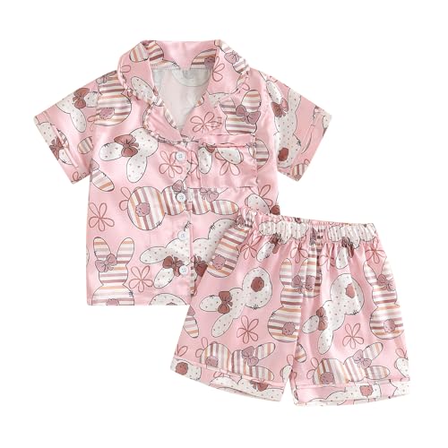 OikMombiu Toddler Kids Baby Girls Easter Outfit Silk Pajamas Short Sleeve Button Up Shirt Shorts Easter Summer Pajama