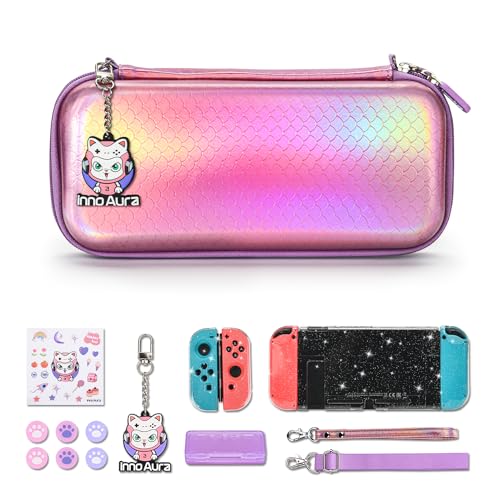 Specification: Switch Case for NS Switch, innoAura 16 in 1 Switch Accessories Set with Mermaid Switch Carrying Case, Switch Protective Case, Switch Screen Protector, Switch Thumb Caps (Mermaid Pink)