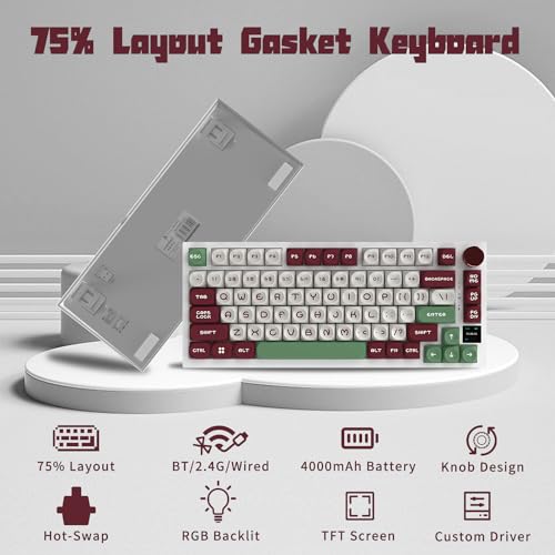 Specification: AJAZZ AK820PRO 75% Hot Swap Gasket Mount Mechanical Keyboard with TFT Display Screen, 4000mAh BT/2.4G/Wired RGB South Facing LED, MOA Profile Keycaps & Knob Control, Flying Fish Switch