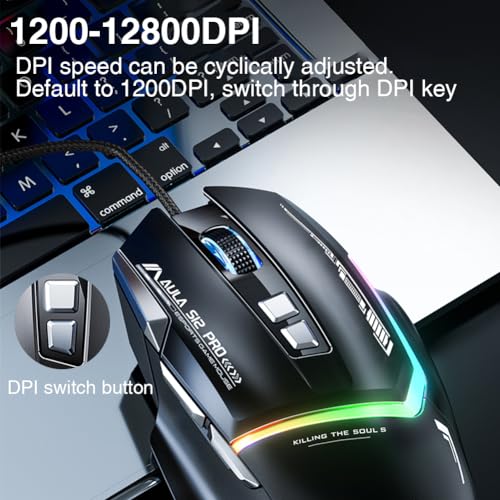 Specification: AULA S12Pro White Wired Gaming Mouse,12800 DPI Optical Gamer Mouse with RGB Backlit,8 Programmable Buttons,Software Supports DIY Keybinds Rapid Fire Button