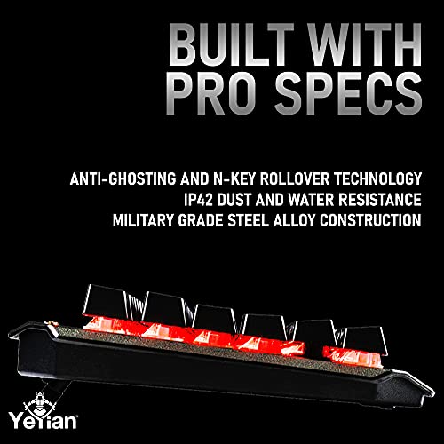 Specification: YEYIAN SPARK Mechanical Gaming Keyboard, 87 TKL RGB LED Backlit 16M Color Keys, OUTEMU Red Hot-Swappable Switches, Cherry MX Equivalent, 13 Modes, 50M Keystrokes, Steel Frame, Braided Cable Tenkeyless