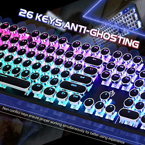 Specification: YSCP Typewriter Style Mechanical Gaming Keyboard RGB Backlit Wired with Blue Switch Retro Round Keycap 104 Keys Keyboard (Black 104 Keys RGB)
